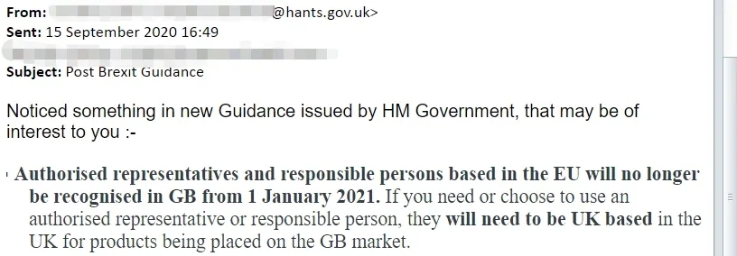 No.1 2021.01.01英國確認脫歐開始,歐盟代表/售后服務(wù)地址不再適用英國市場。必須是【英國代表】