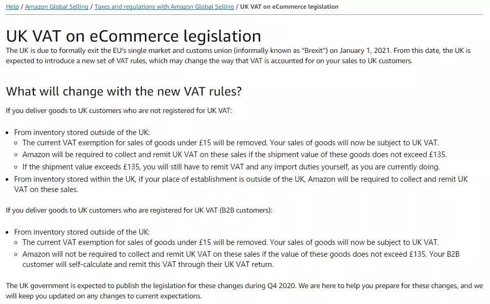 如果托運商品的價值不超過£135 ,亞馬遜將根據(jù)英國稅務(wù)機關(guān)要求必須代收代繳適用的增值稅。